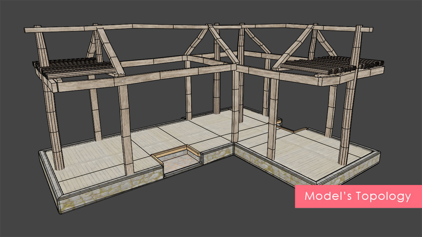 ⭐ This model and all its textures are compatible with the other house models in the Medieval House Collection, and the materials and textures can be swapped between houses to make a great number of variations!