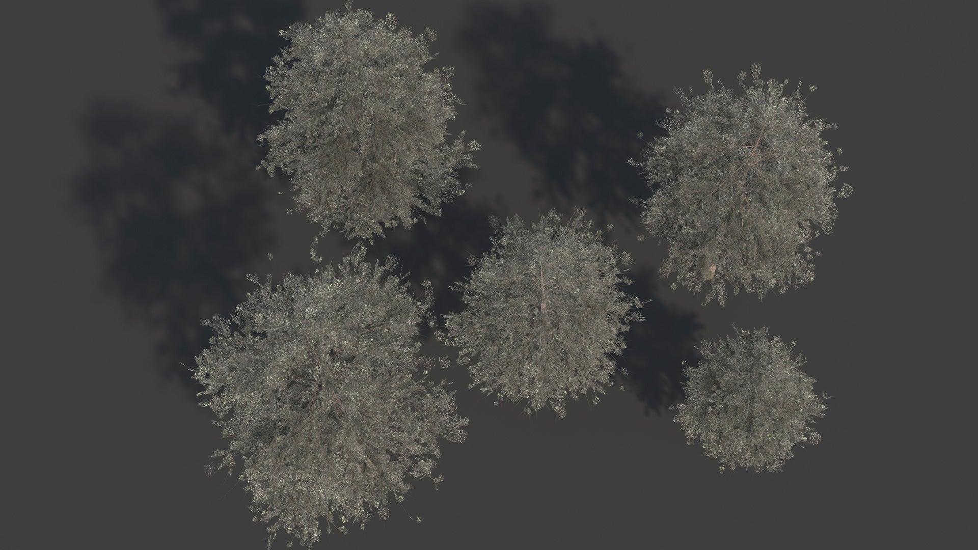 This is a digital 3D model of a collection of five Douglas Fir trees.