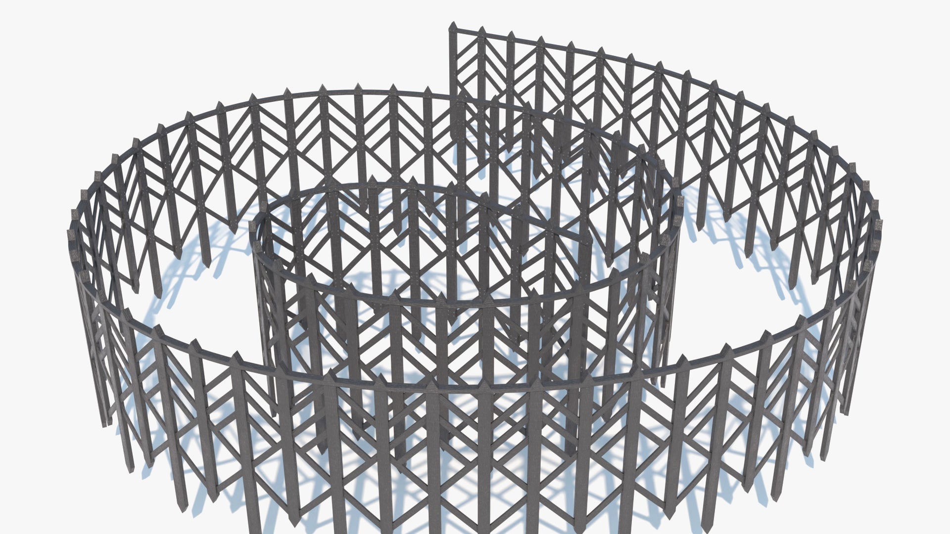 The model is fully modular and built to be extruded along curves, allowing it to form circular, spiral, or custom enclosure shapes with ease. This makes it ideal for creating fenced courtyards, barriers, defensive perimeters, or ornamental boundaries without manual placement of individual segments.