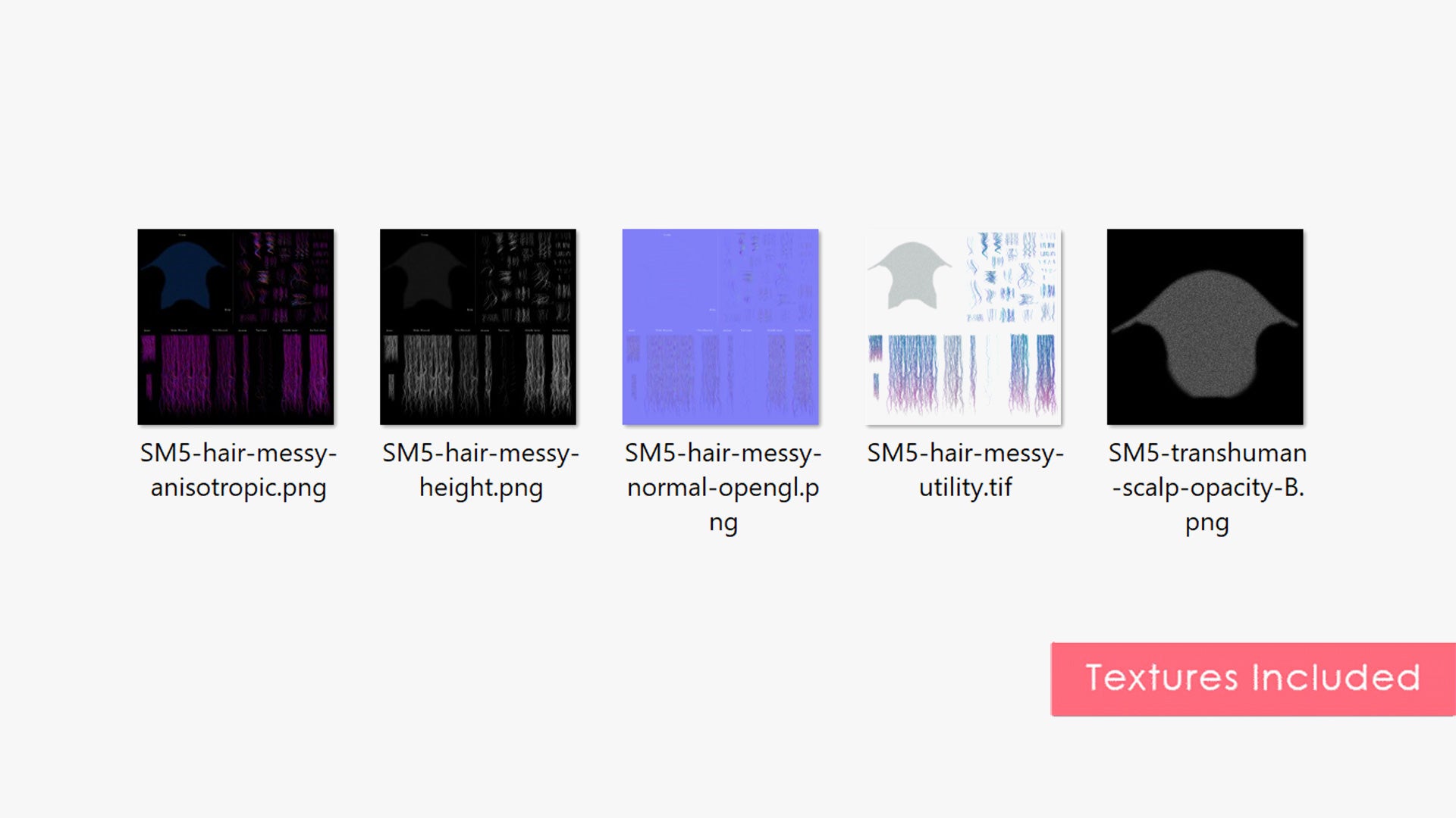 - Material and UVs compatible with other hair textures from the Transhuman product line.