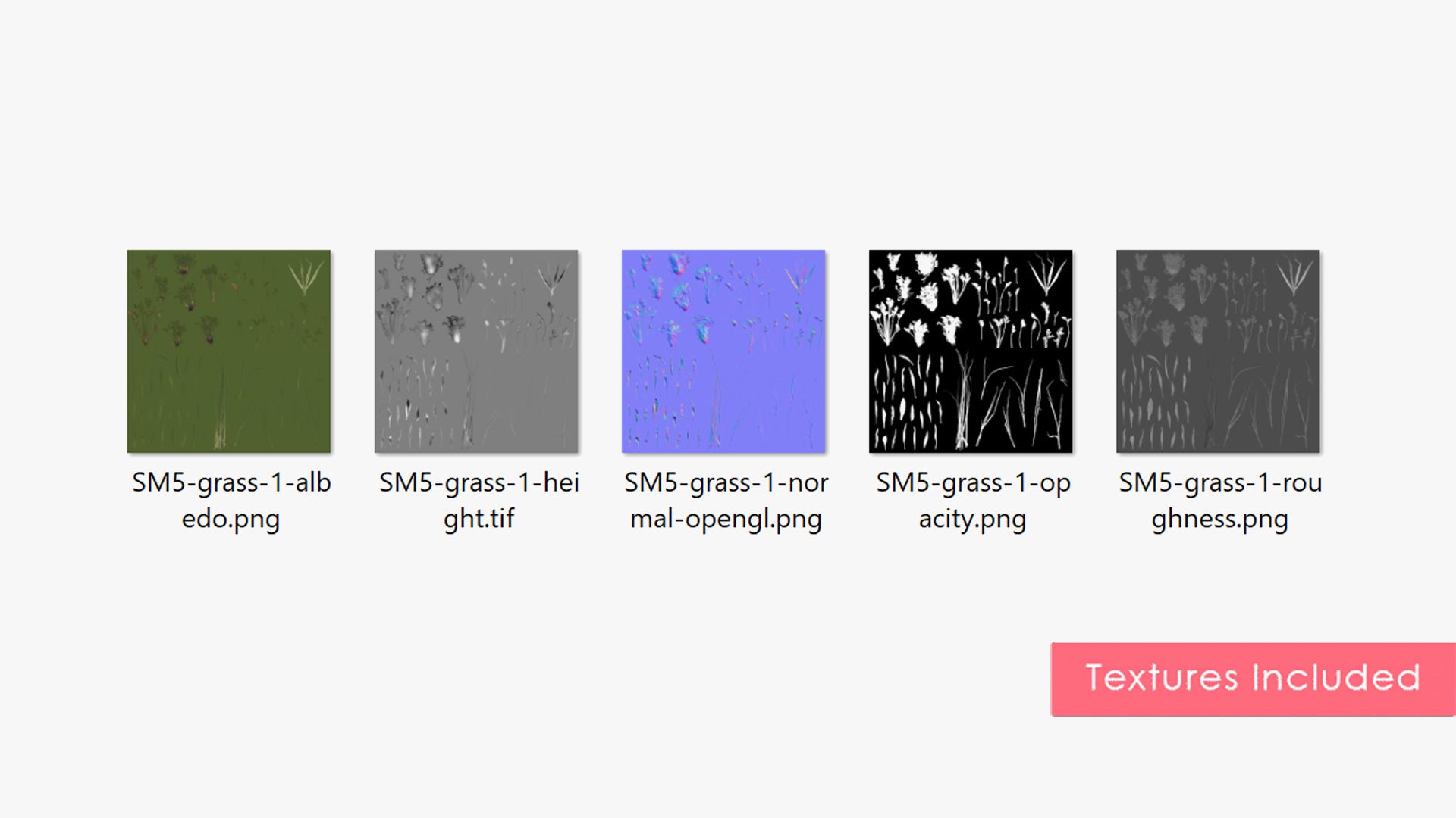 The product contains Albedo, Roughness, Height, Opacity, and Normal map (OpenGL) textures.