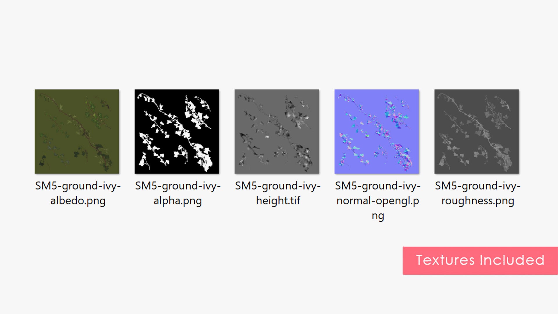 The product contains Albedo, Roughness, Height, Opacity, and Normal map (OpenGL) textures.