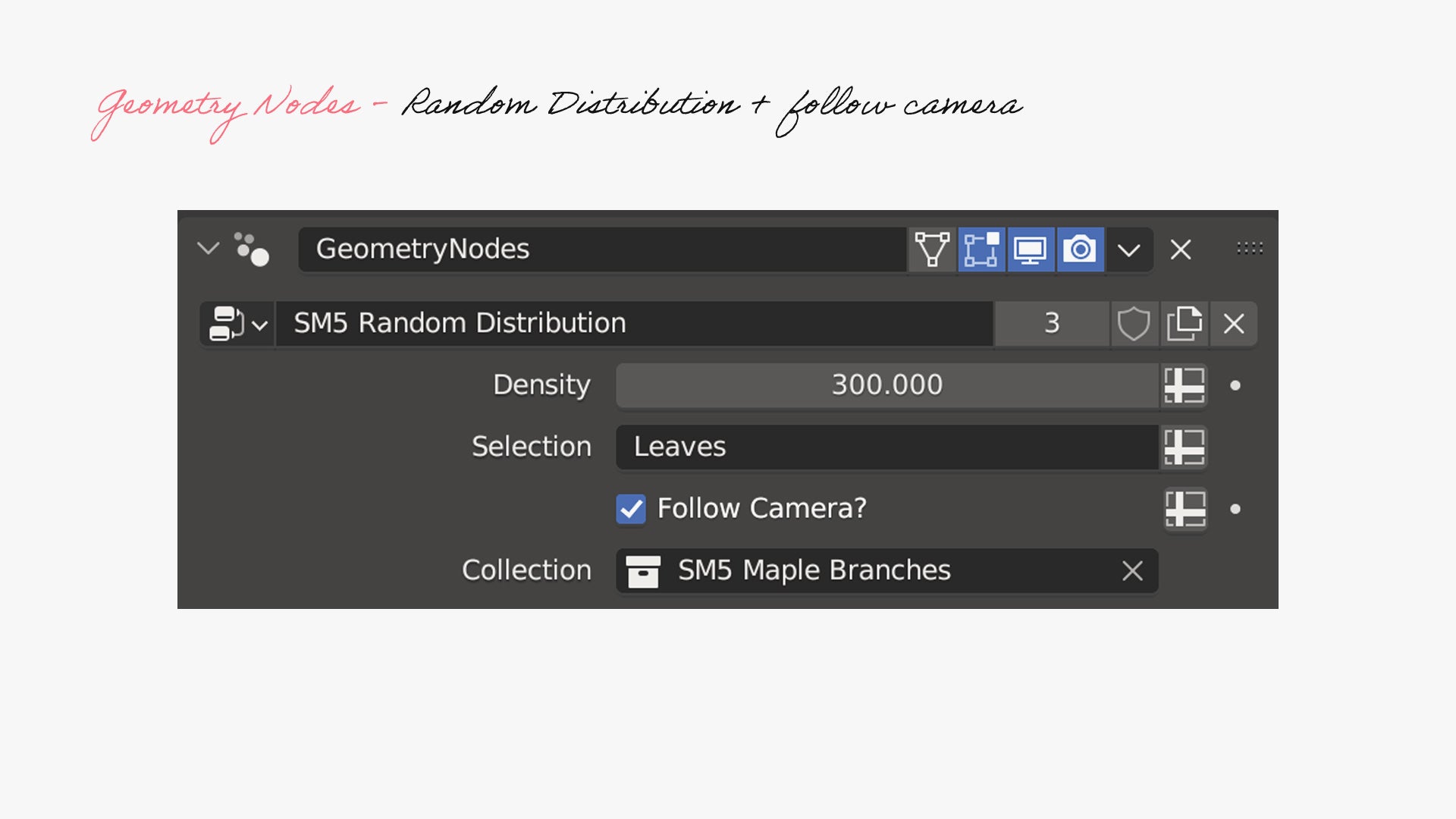 The trees come in three designs: Elder (large and beautifully shaped - 7 to 10m high), Grown (6m high), and Young (3.5 m high). The leaves can be increased or decreased in number through a geometry node in the Blender file.