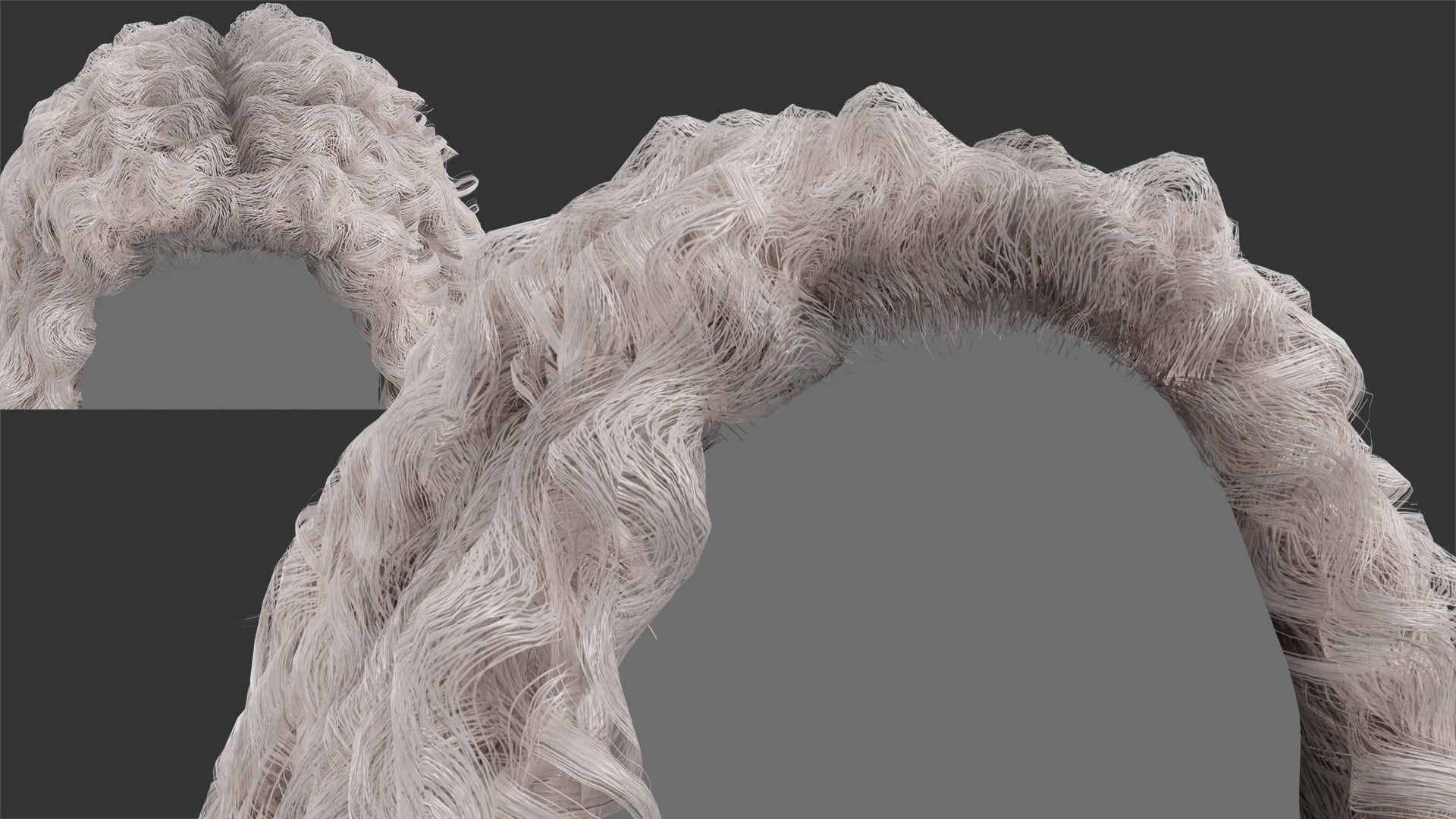 This is a digital 3D model of a long and wild curly hairstyle with strands resting over the shoulders.