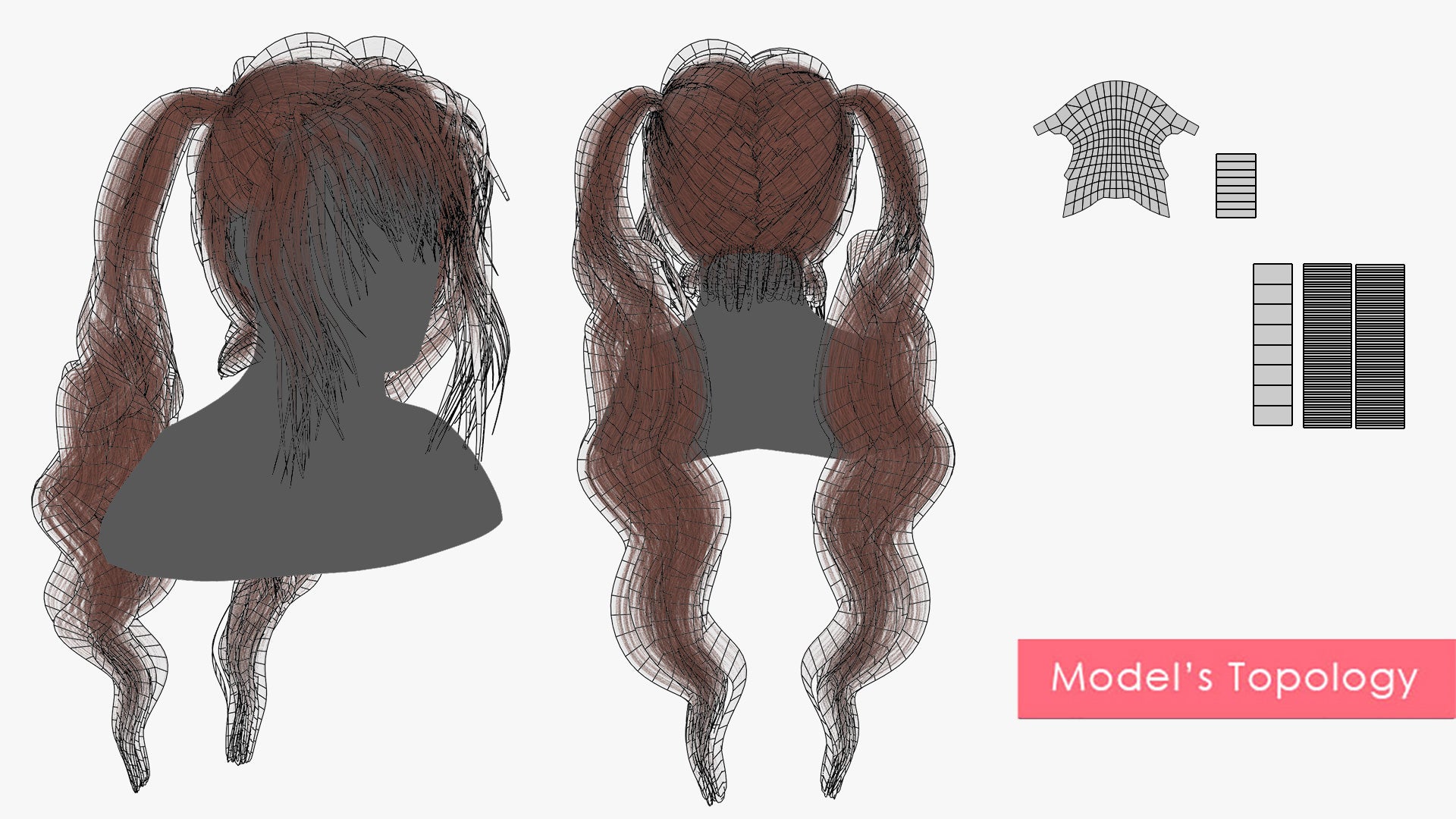 Crafted with mesh cards to create a 3D model with a low polycount, these locks are ready to be animated with a cloth modifier to make your project realistic and truly unique. Flaunt your otaku style with a real mesh-terpiece! 🤩