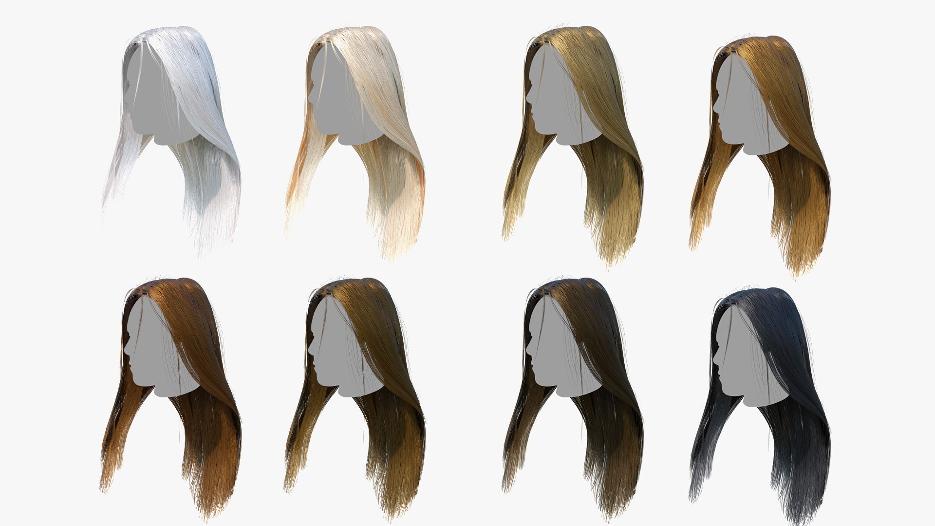 The hair comes with 8 color variations, that can be easily changed through a dropdown menu, or handpicked with a color dial.