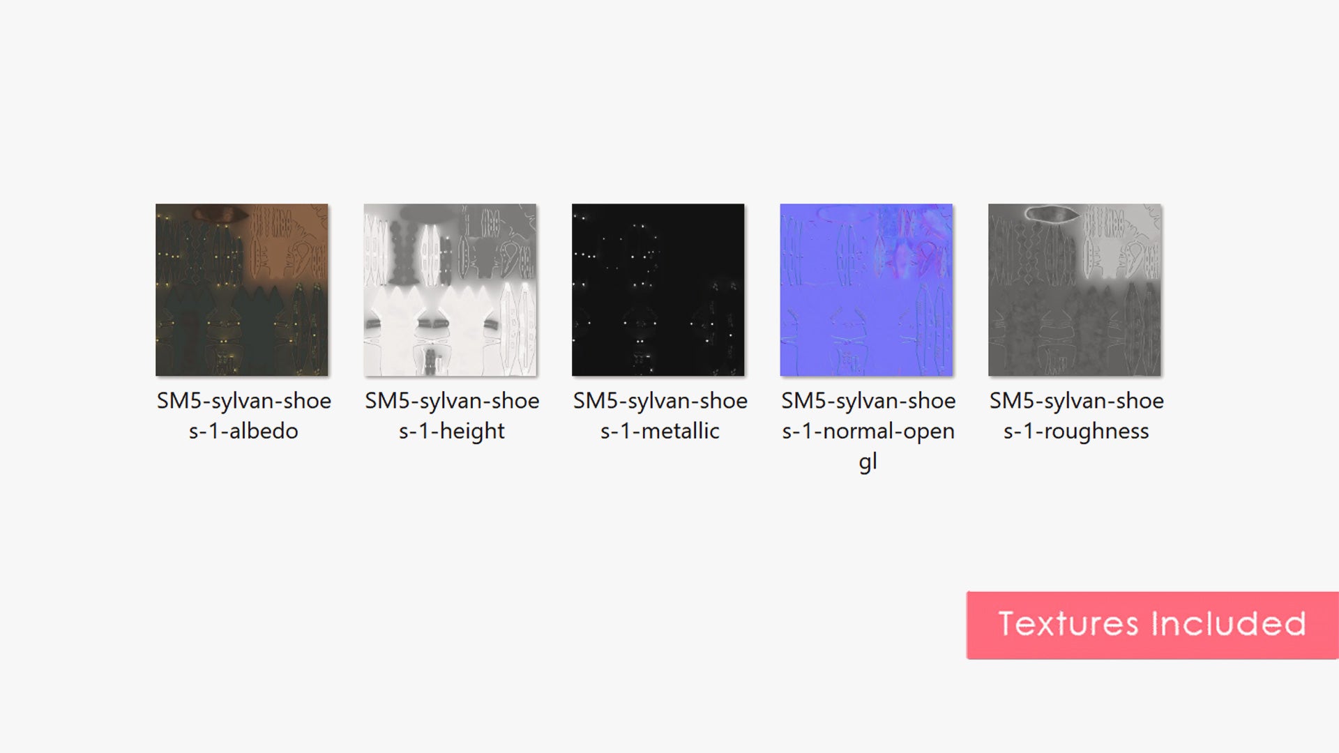 The product contains Albedo, Roughness, Metallic, Height, and Normal map (OpenGL) textures.