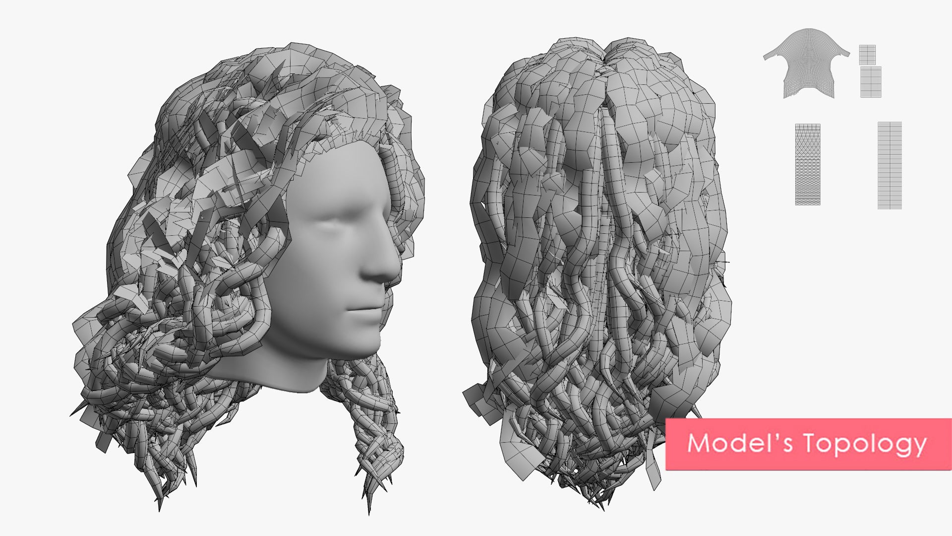 Medium Curly Hair Over Shoulder | Mesh Cards |