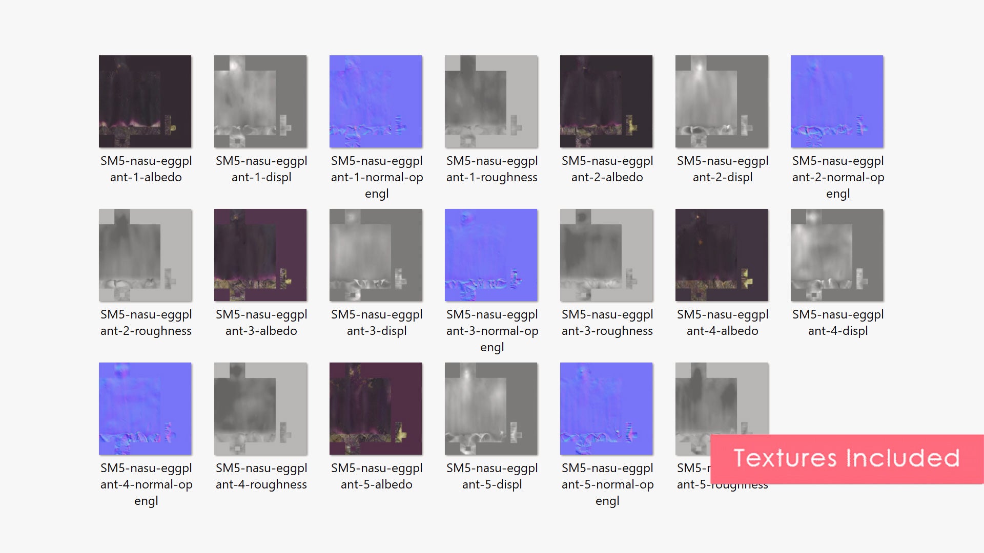 The textures can be interchanged between the models, allowing for a great variety of eggplants ✨