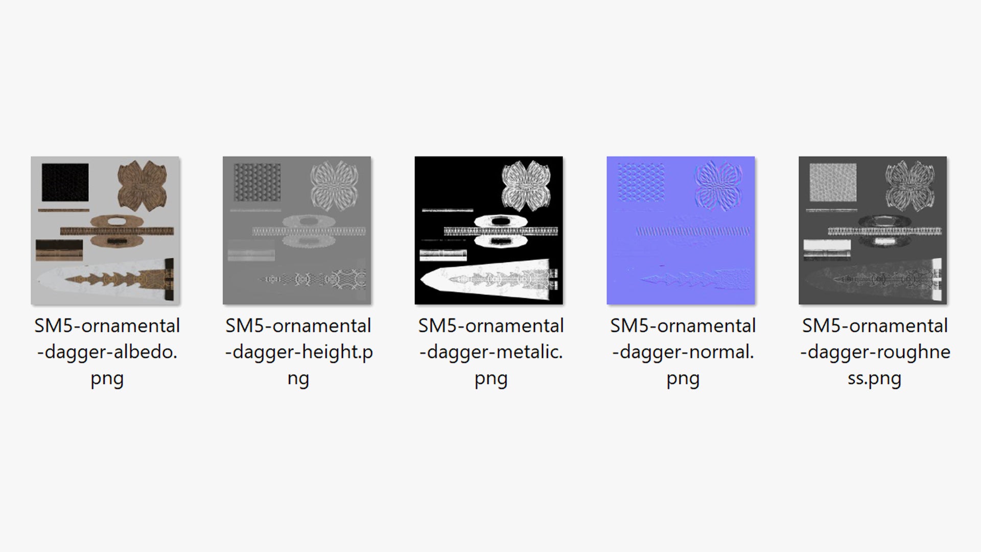 The product contains Albedo, Roughness, Height, Metallic and Normal map (OpenGL) textures for each material.