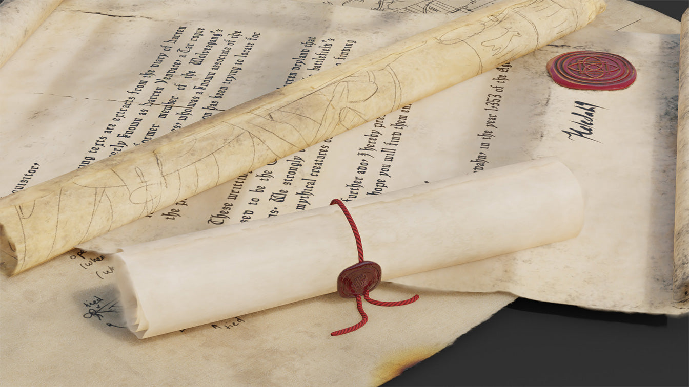 All the parchments can be edited and the contents on them easily replaced by switching the "Content" texture with a custom.