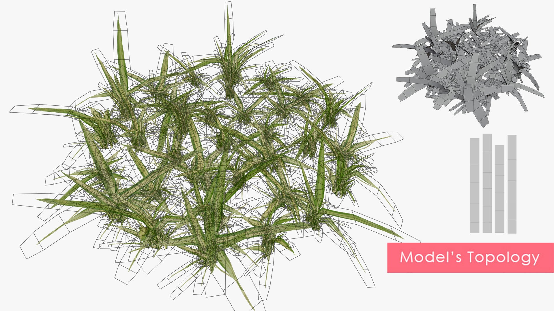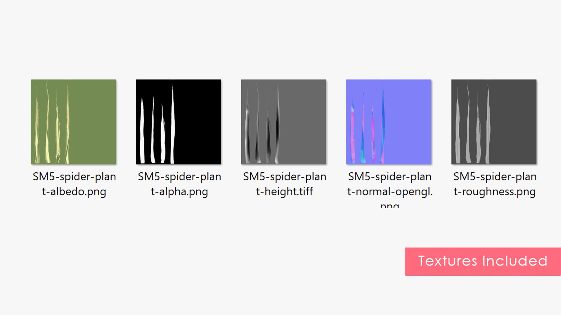 The model contains, besides the featured plants, four leaves of main geometry, that when scattered (making use of the geometry node modifier included) generate beautiful spider plants for populating your scene.